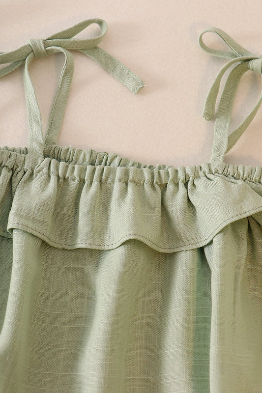 Sold outGreen strap ruffle linen girl bubble