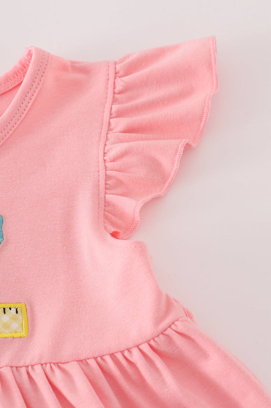 Pink apple pencil applique ruffle dress