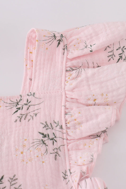 Floral print smocked ruffle bubble