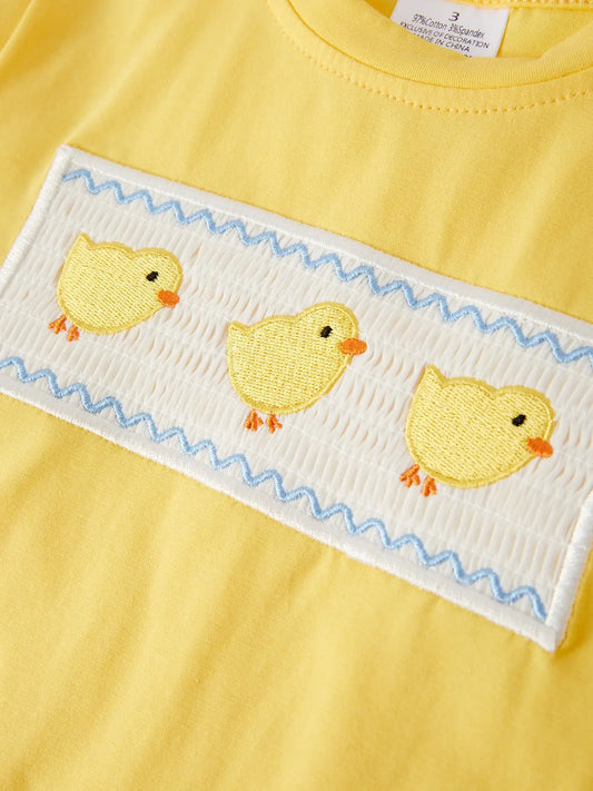 Spring and Summer Chicken Embroidery Short Sleeve Shorts Boy Set