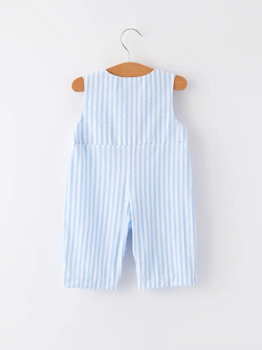 Spring and Summer Chicken Embroidery Blue Boy Romper