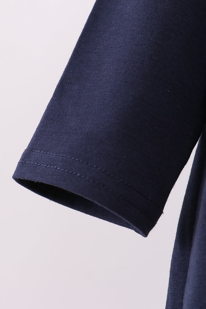 Celebrate the holiday season in style with this Navy Christmas Santa Claus Embroidery Dress. Featuring charming Santa embroidery against a deep navy backdrop, this playful dress brings festive cheer to any occasion. Its cozy fabric and flattering fit make it perfect for holiday parties, family gatherings, or spreading joy wherever you go. Add a splash of seasonal magic to your wardrobe with this delightful festive dress!